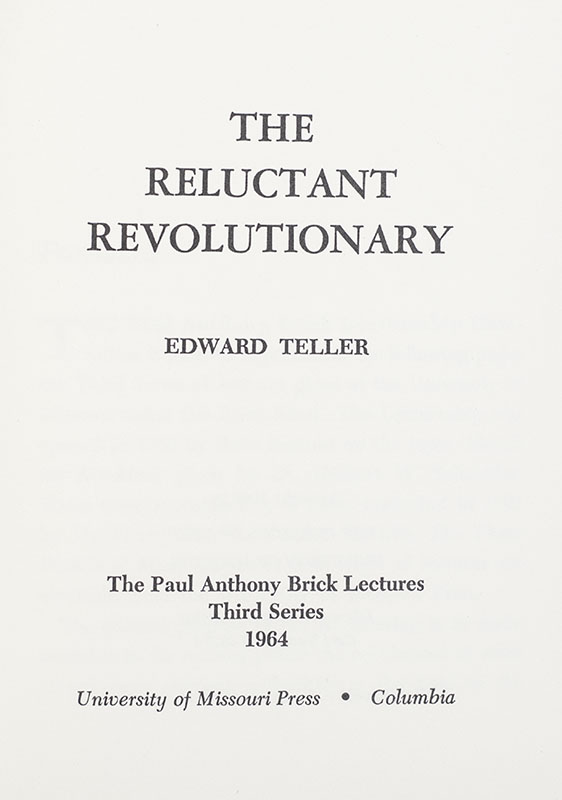 "And so I am a revolutionary, and a most reluctant one": First Edition of Edward Teller's The Reluctant Revolutionary; inscribed by him