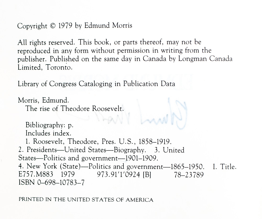 "The only man who never makes mistakes is the man who never does anything": First Edition of The Rise of Theodore Roosevelt; Signed by Edmund Morris