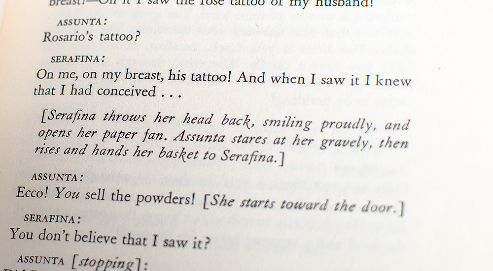 Set among a colony of Sicilian fisher-folk on the American Gulf Coast, The Rose Tattoo is the story of Serafina delle Rose, an Italian-American widow in Mississippi who has withdrawn from the world after her husband's death and expects her daughter to do the same. The play premiered on Broadway on February 2, 1951, and was published by New Directions in book form the following month.