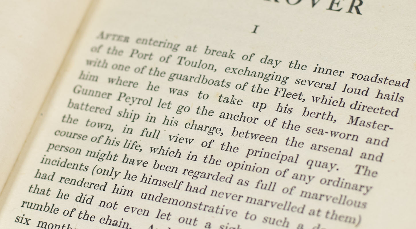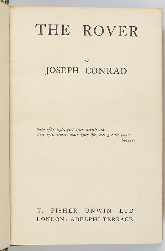 "Sleep after toyle, port after stormie seas, Ease after warre, death after life, does greatly please": First Edition of Joseph Conrad's The Rover; Finely Bound by Bayntun