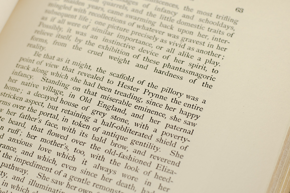 "The most memorable and original aspect of The Scarlet Letter lies in Hawthorne's portrait of Hester Prynne, who has been described as "the first true heroine of American fiction", a woman whose experience evokes the biblical fate of Eve. Hawthorne's achievement is to make her passion noble, her defiance heartbreaking and her frailty inspiring. She becomes the archetype of the free-thinking American woman grappling with herself and her sexuality in a cold, patriarchal society" (The Guardian). The first edition of The Scarlet Letter sold out in ten days and “made Hawthorne’s fame, changed his fortune and gave to our literature its first symbolic novel a year before the appearance of Melville’s Moby-Dick” (Bradley).