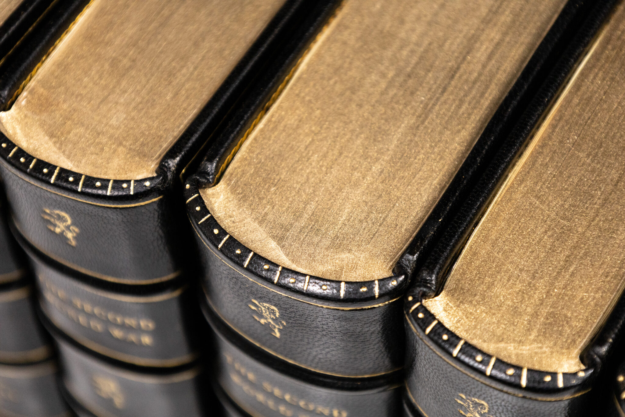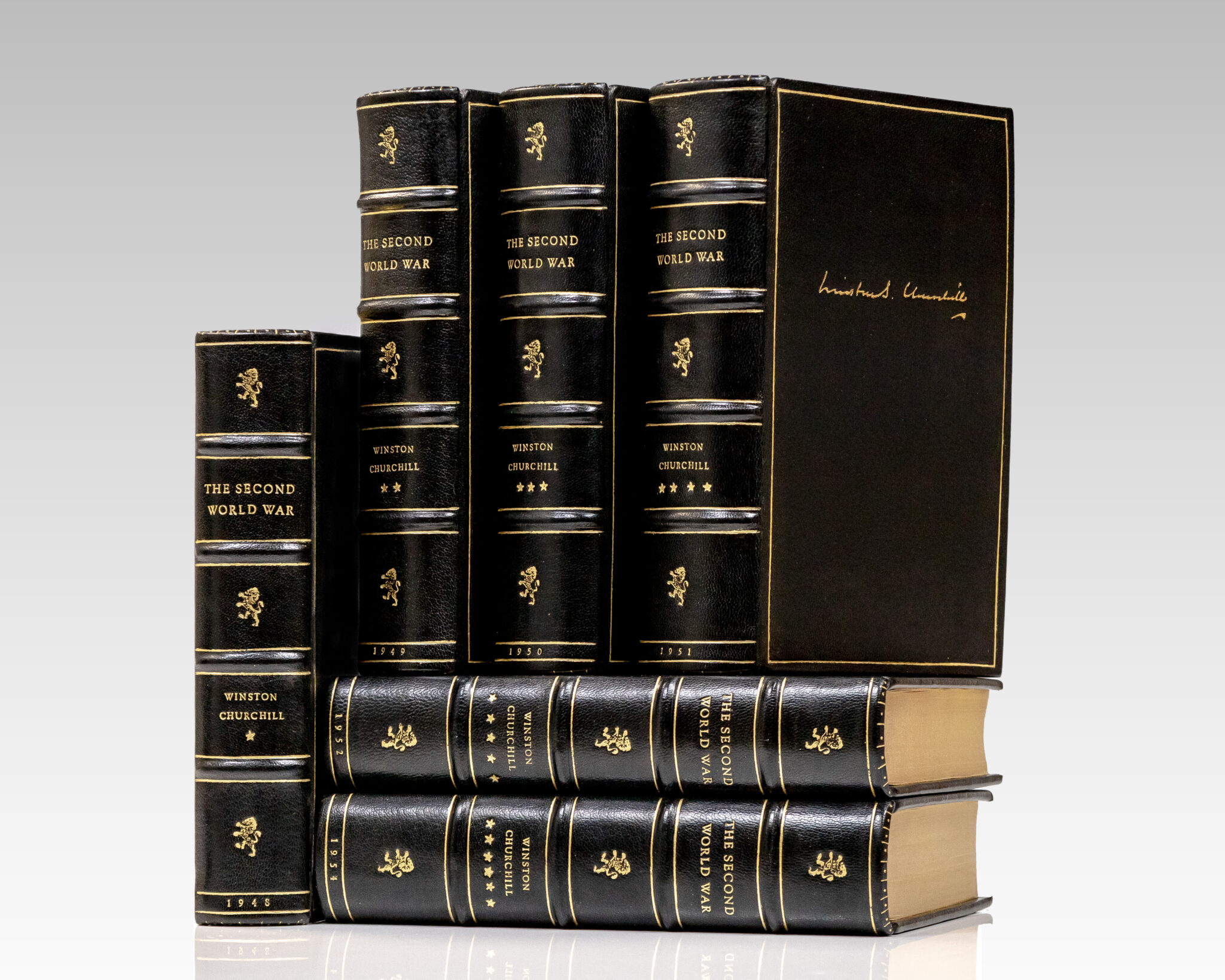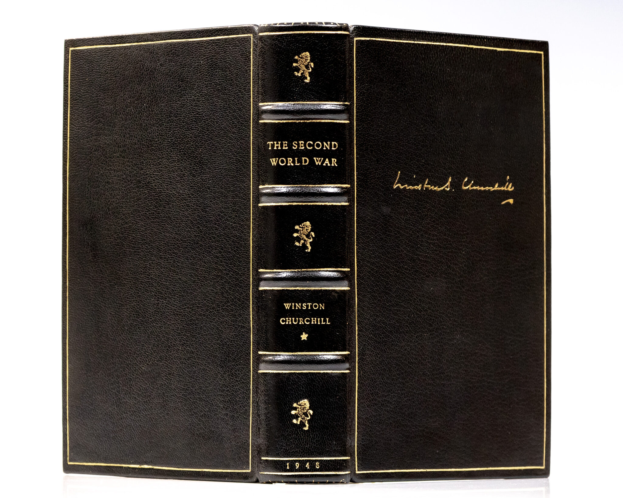 "We shall show mercy, but we shall not ask for it": First Editions of Winston Churchills Masterpiece The Second World War; Finely Bound in Full Morocco by the Harcourt Bindery