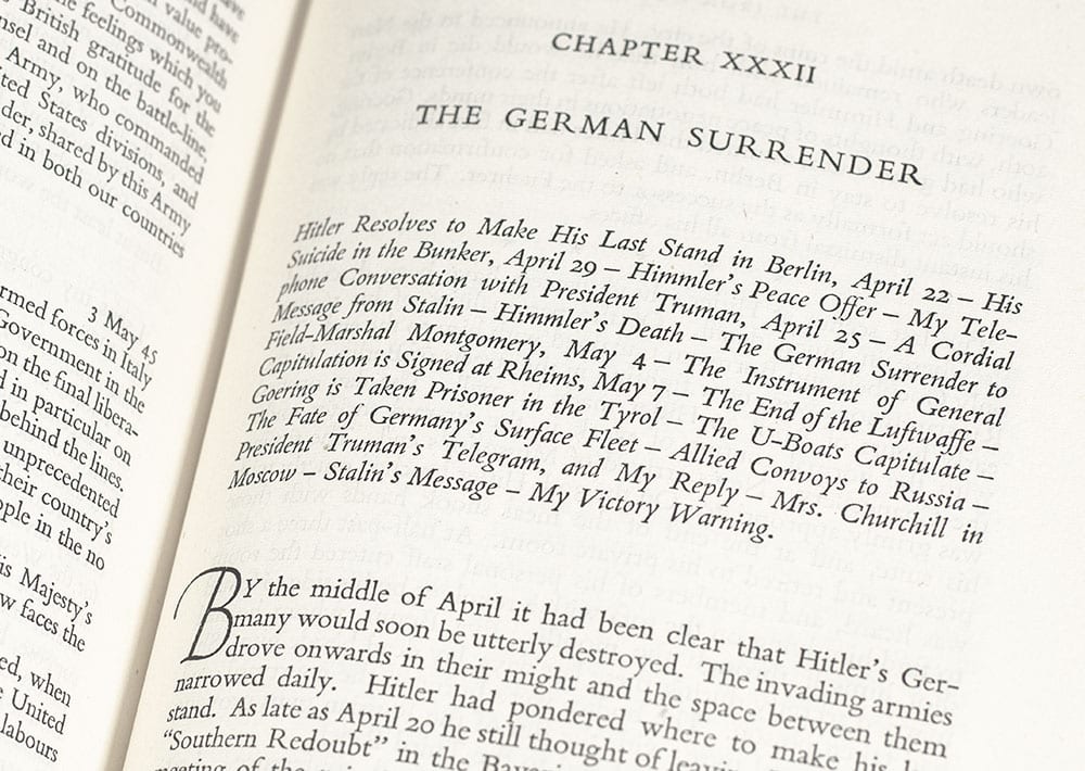 "We shall show mercy, but we shall not ask for it": First Editions of Winston Churchill’s Masterpiece The Second World War; Volume V Signed and dated by Him