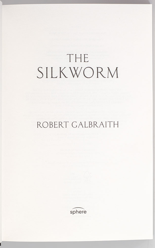 “There are always loose ends in real life": FIRST EDITION OF ROBERT GALBRAITH'S SILKWORM