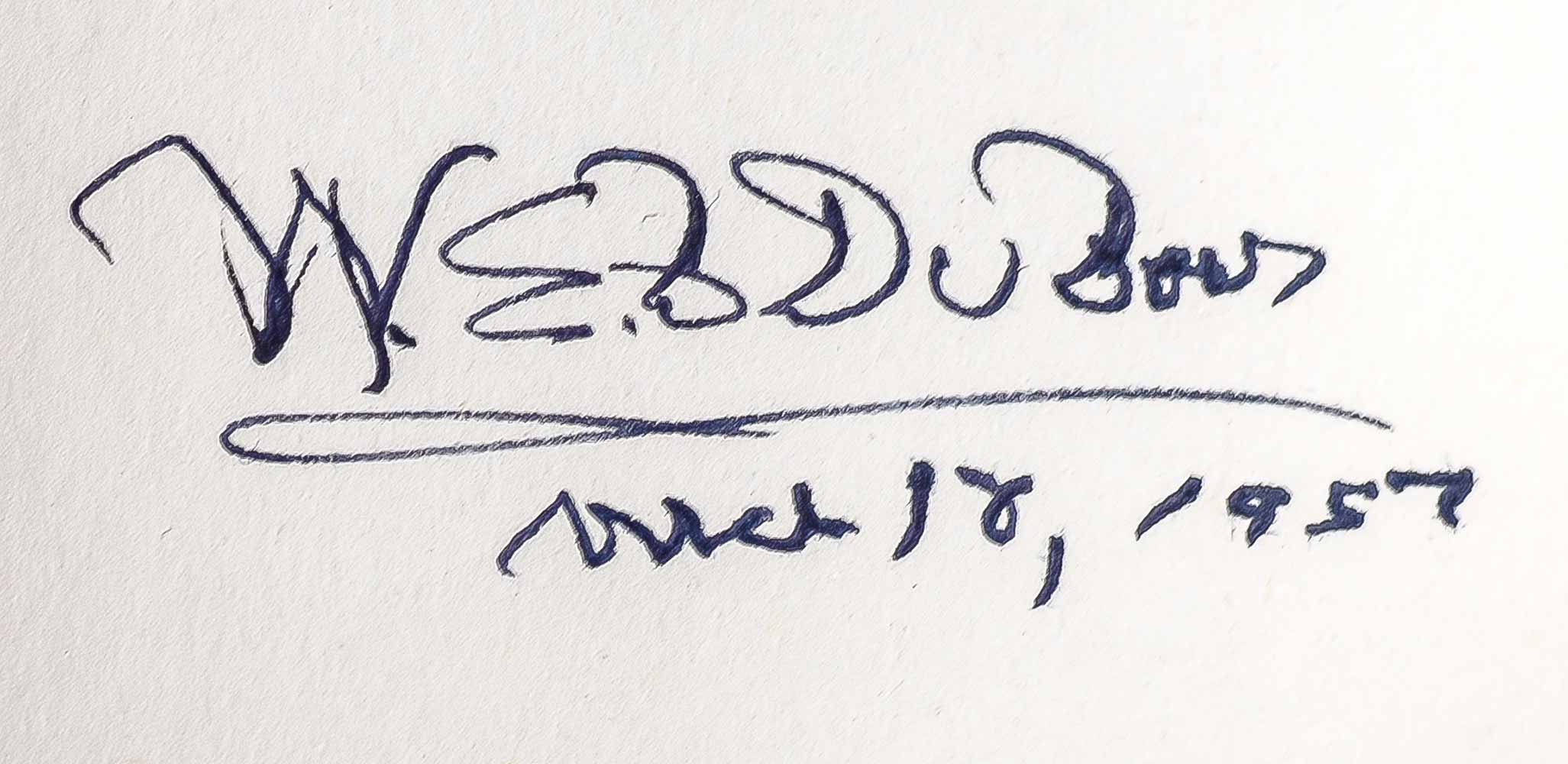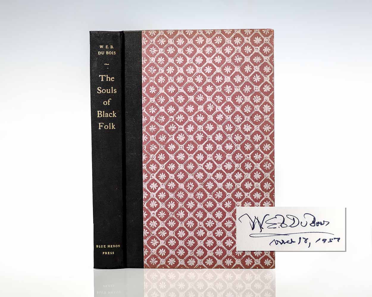 Fiftieth anniversary edition of this landmark work. Octavo, original black cloth over patterned boards, illustrated with musical notations. Boldly signed by the author on the half-title page, "W.E.B. Du Bois March 18, 1957." In fine condition.