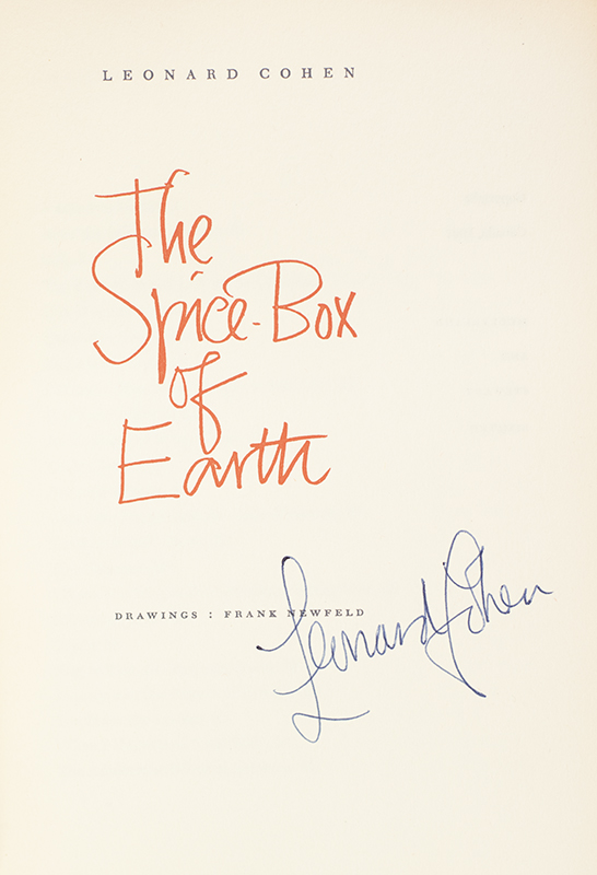 "I want my body and my hands to be pools for your looking and laughing": First Edition of Leonard Cohen's The Spice-Box of Earth; Signed by Him