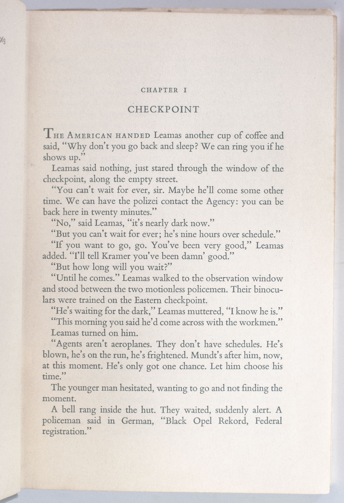 Upon publication, John le Carré’s The Spy Who Came in From the Cold forever changed the landscape of spy fiction. Le Carré combined the inside knowledge of his years in British intelligence with the skills of the best novelists to produce a story as taut as it is twisting, unlike any previously experienced. “In the tradition of Conrad, Maugham, and Greene, John Le Carré’s realist spy novel is a form which represents a genuine modern version of tragedy… The Spy Who Came in From the Cold is still Le Carré’s cleanest job: compact in structure, deftly deceptive in the unfolding of its triple-cross, and painfully human in the characterizations of two victims of ‘our’ side’s necessary but evil mission” (Reilly, 933-34). “In a covert war later immortalized in John Le Carré’s The Spy Who Came in From the Cold, [West and East German intelligence chiefs] conducted the battle of moles, infiltration, counter-infiltration, double agent and triple agent” (Volkman, Spies, 180). Hailed by Graham Greene as "the best spy story I have ever read." It was the basis for the 1965 film directed by Martin Ritt and starring Richard Burton, Claire Bloom, and Oskar Werner. It received several awards, including four BAFTA Awards for Best Film, Best Actor, Best Cinematography, and Best Art Direction. For his performance, Richard Burton also received the David di Donatello Award for Best Foreign Actor, the Golden Laurel Award, and an Academy Award nomination for Best Actor in a Leading Role.