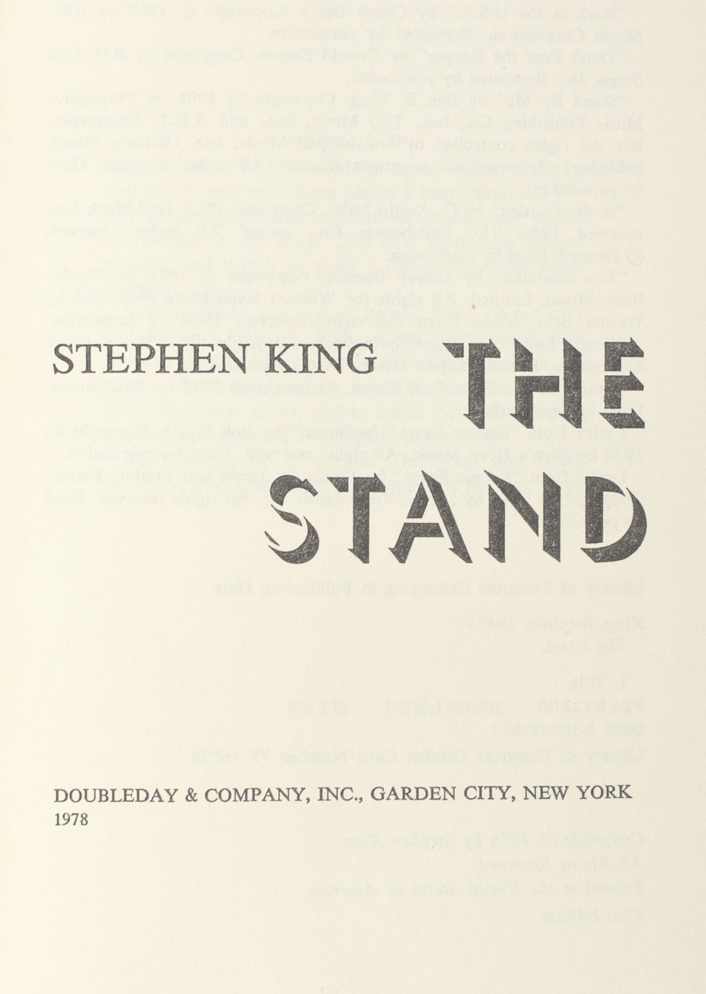 "The place where you made your stand never mattered. Only that you were there...and still on your feet": First Edition of The Stand; Inscribed by Stephen King to friend and fellow Writer and Icon of the beat generation William Burroughs