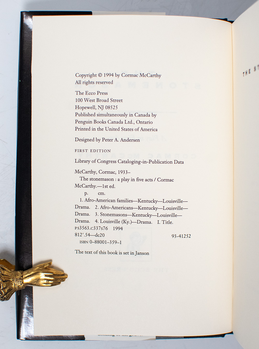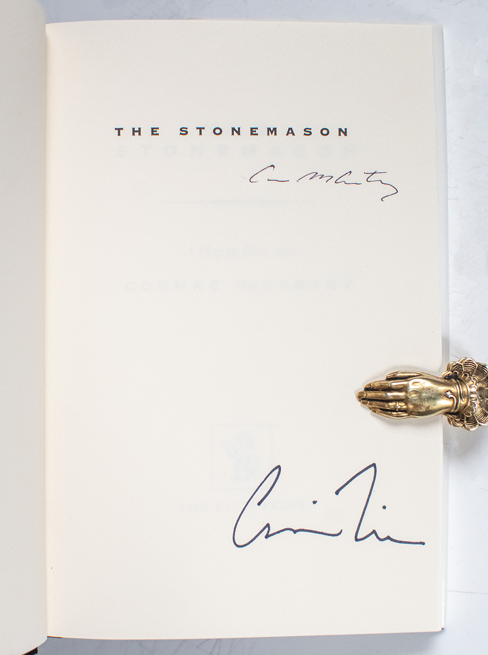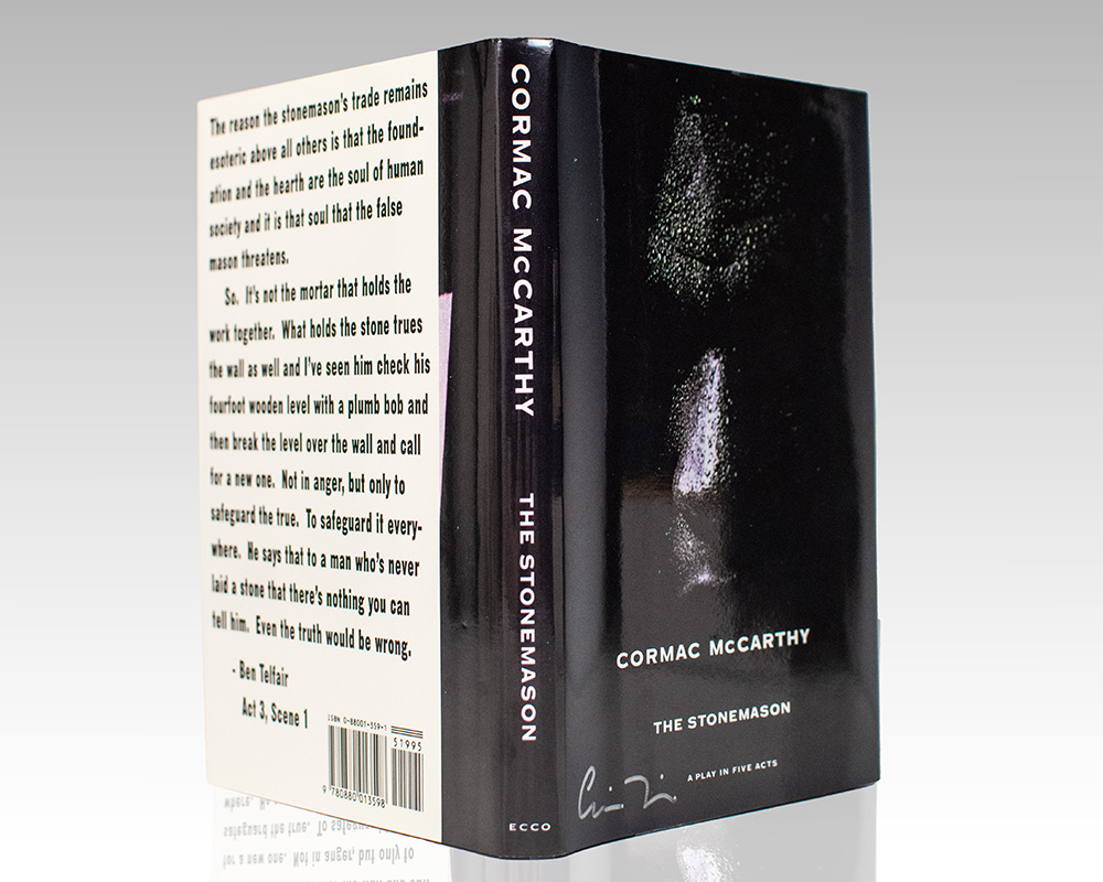First Edition of The Stonemason; Signed by Cormac McCarthy and Signed Three times by Jacket Designer Chip Kidd
