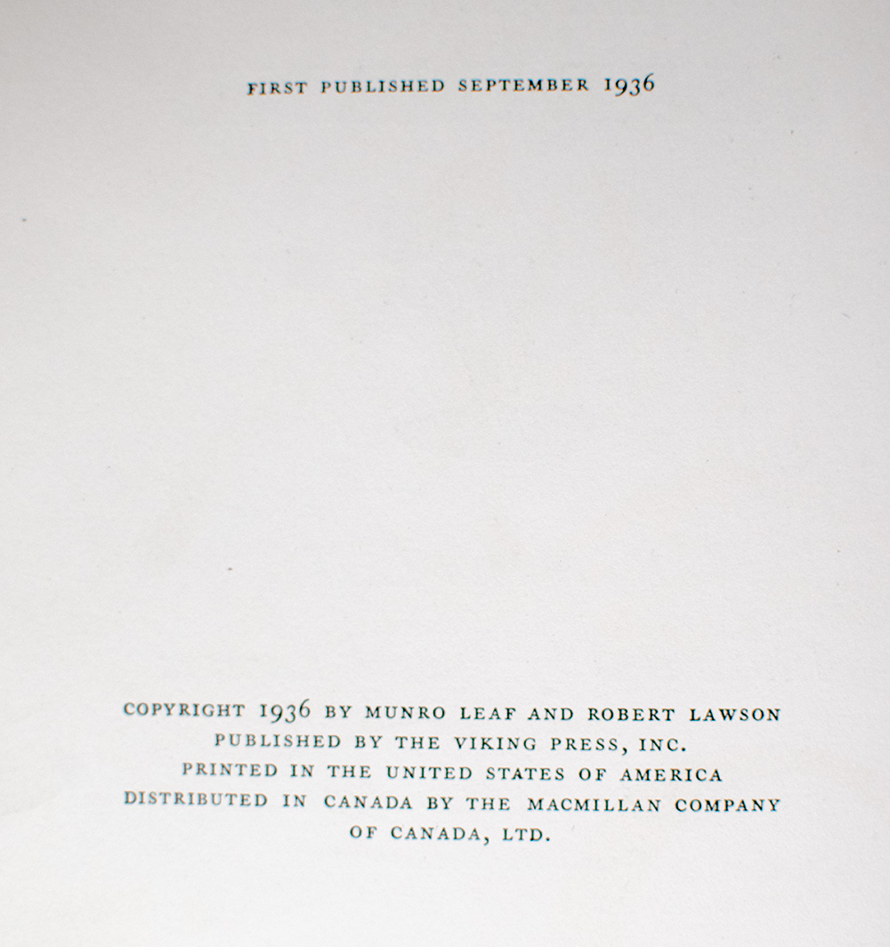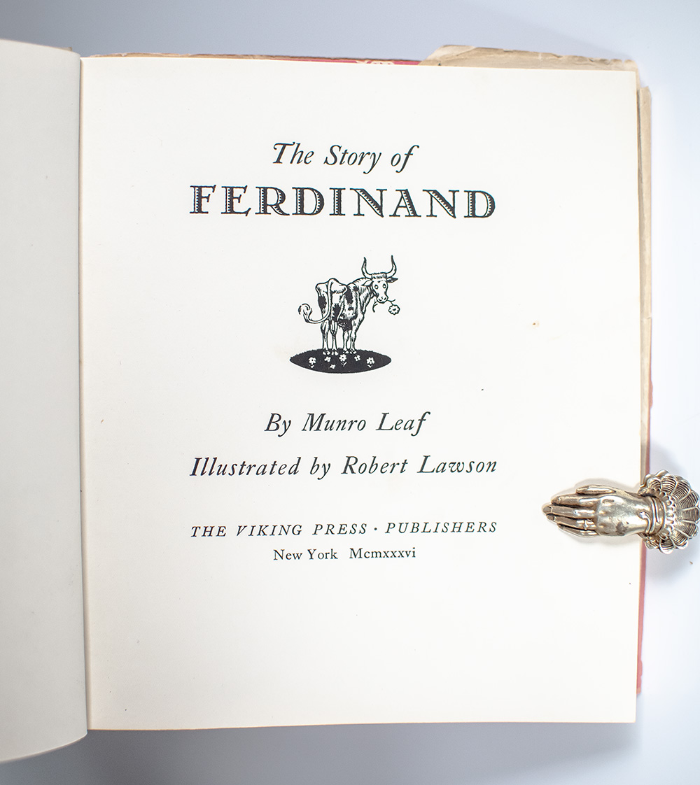 "And for all I know he is sitting there still, under his favorite cork tree, smelling the flowers just quietly": First edition of The Story of Ferdinand