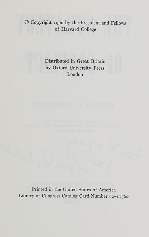 First Edition of The Strategy of Conflict; Inscribed by Nobel Prize-winning economist Thomas Schelling