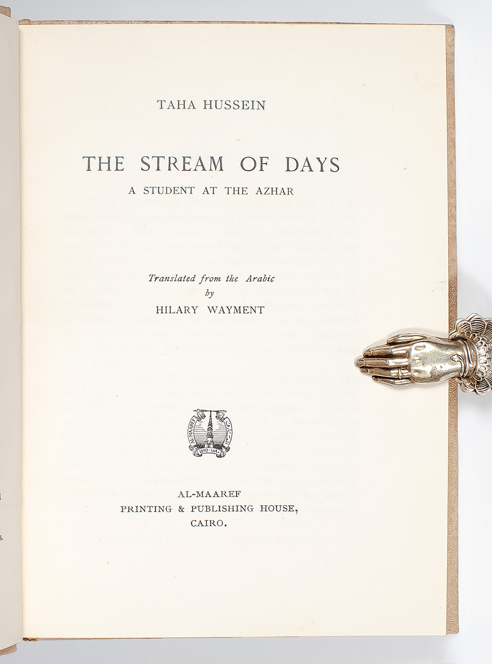 Rare first edition (preceding the first British edition) of the autobiography of one of the most influential 20th-century Egyptian writers, translated from the Arabic by Hilary Wayment. Octavo, original tan cloth. In near fine condition. Rare.