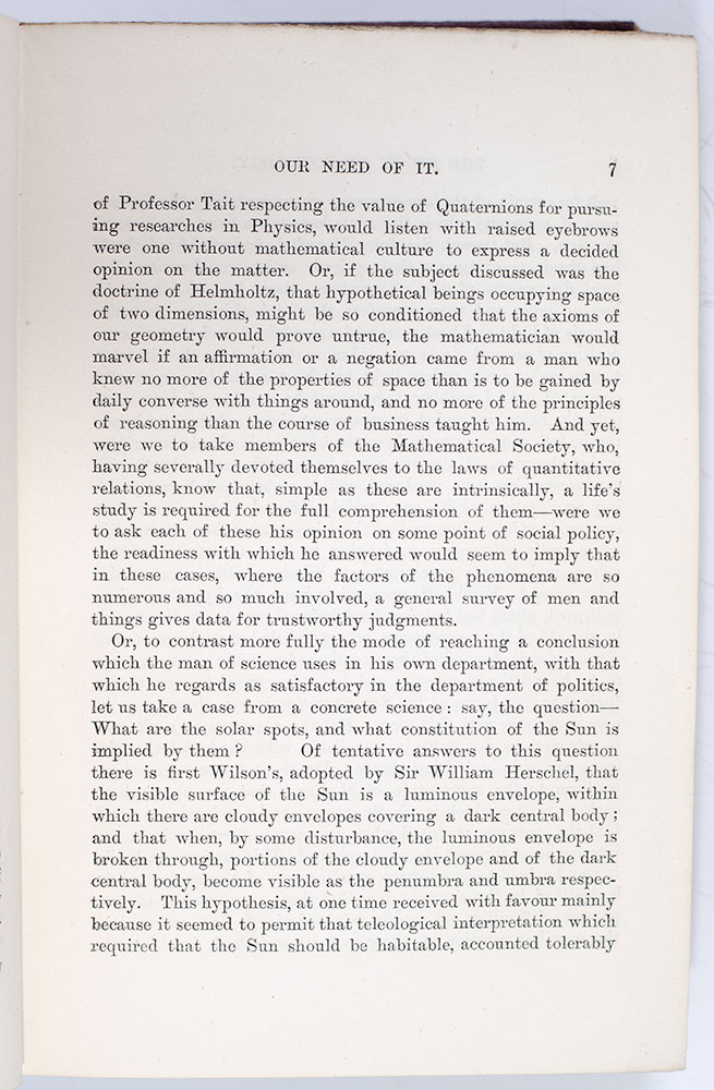 First edition, association copy of famed English philosopher Herbert Spencer's classic work on the evolution of society; presented and inscribed by him to Charles Darwin. Octavo, original publisher's cloth with gilt titles to the spine, dark green endpapers. Association copy, inscribed by the author on the title page, "Charles Darwin with the Author's kind regards." English philosopher, biologist, sociologist, and anthropologist Herbert Spencer invented the expression "survival of the fittest" which he coined in his Principles of Biology (1864) after reading Charles Darwin's On the Origin of Species (1859). A description of the mechanism of natural selection, in Principles of Biology, Spencer drew parallels between his own economic theories and Darwin's biological ones: "This survival of the fittest, which I have here sought to express in mechanical terms, is that which Mr. Darwin has called 'natural selection', or the preservation of favoured races in the struggle for life." Darwin responded positively to Alfred Russel Wallace's suggestion of using Spencer's new phrase "survival of the fittest" as an alternative to "natural selection", and adopted the phrase in The Variation of Animals and Plants Under Domestication published in 1868. In On the Origin of Species, he introduced the phrase in the fifth edition published in 1869, intending it to mean "better designed for an immediate, local environment" (Gould). Darwin wrote on page 6 of The Variation of Animals and Plants Under Domestication published in 1868, "This preservation, during the battle for life, of varieties which possess any advantage in structure, constitution, or instinct, I have called Natural Selection; and Mr. Herbert Spencer has well expressed the same idea by the Survival of the Fittest. The term 'natural selection' is in some respects a bad one, as it seems to imply conscious choice; but this will be disregarded after a little familiarity." He defended his analogy as similar to language used in chemistry, and to astronomers depicting the "attraction of gravity as ruling the movements of the planets", or the way in which "agriculturists speak of man making domestic races by his power of selection." Spencer and Darwin were occasional correspondents and would regularly send each other copies of their latest works. Accompanied by an autograph letter signed by Charles Darwin's great grandson, Edward Darwin, gifting the book to a relative dated November 27th 1969. In very good condition. Housed in a custom half morocco clamshell box by the Harcourt Bindery. Books from Darwin's library are very rare to the market.