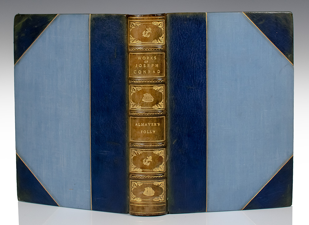 The Sun-Dial edition of the works of Joseph Conrad. Octavo, 24 volumes bound in three quarter crushed levant navy morocco with gilt titles and nautical stamping to the spine in six compartments within raised gilt bands, top edge gilt, frontispiece portrait to Volume I. One of seven hundred and thirty-five numbered copies with the first volume (Almayer's Folly) signed by Joseph Conrad, this is number 58. In near fine condition, bookplate.