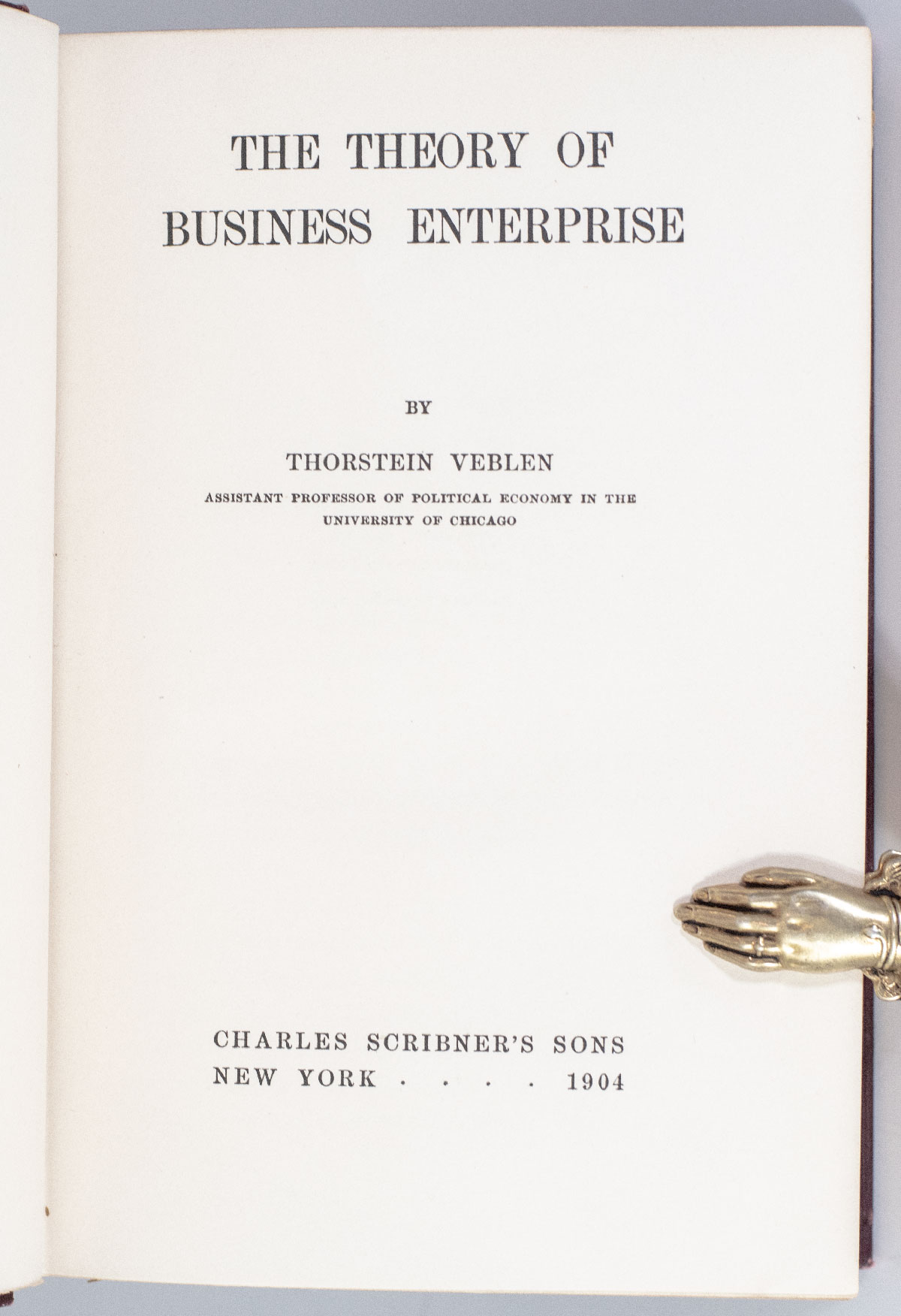 “AS A MATTER OF SELECTIVE NECESSITY, MAN IS AN AGENT. …HE IS POSSESSED OF A TASTE FOR EFFECTIVE WORK, AND A DISTASTE FOR FUTILE EFFORT”: FIRST EDITION OF THORSTEIN VEBLEN'S THE THEORY OF BUSINESS ENTERPRISE