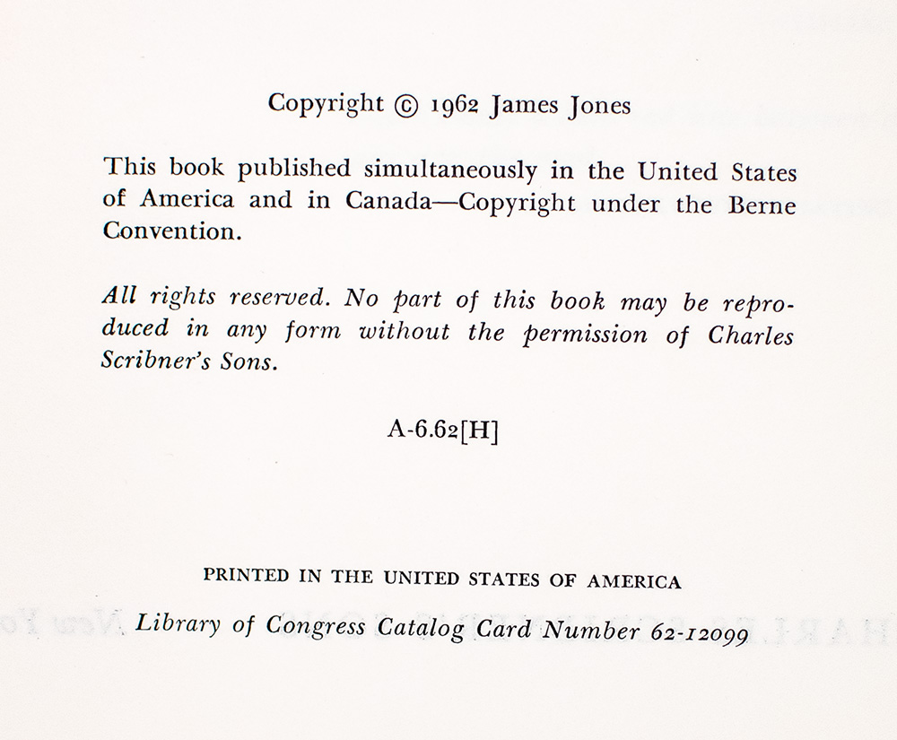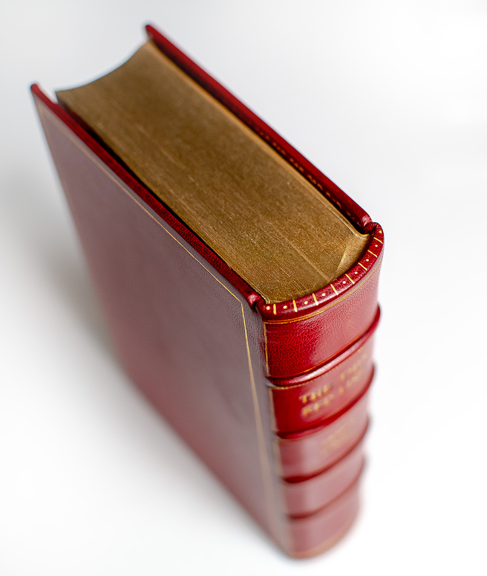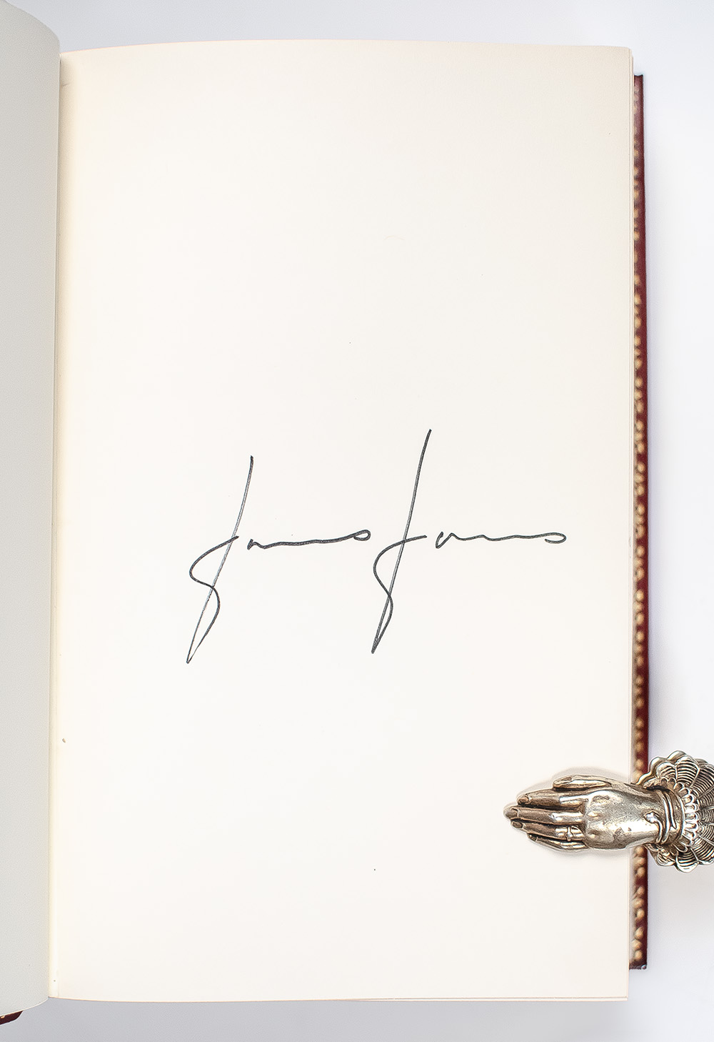 First edition of Jones’ sequel to his first novel, From Here to Eternity. Octavo, bound in full morocco by the Harcourt Bindery, gilt titles and tooling to the spine in six compartments within raised gilt bands, gilt ruling to the front and rear panels, gilt inner dentelles stamp-signed by the Harcourt Bindery, marbled endpapers, all edges gilt. Boldly signed by James Jones on a page bound in. In fine condition. An exceptional presentation.