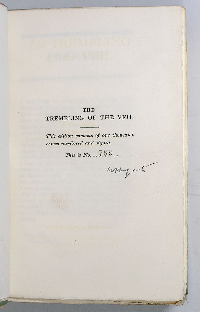 Signed limited edition of William Butler Yeats' The Trembling of the Veil; one of only 1000 copies
