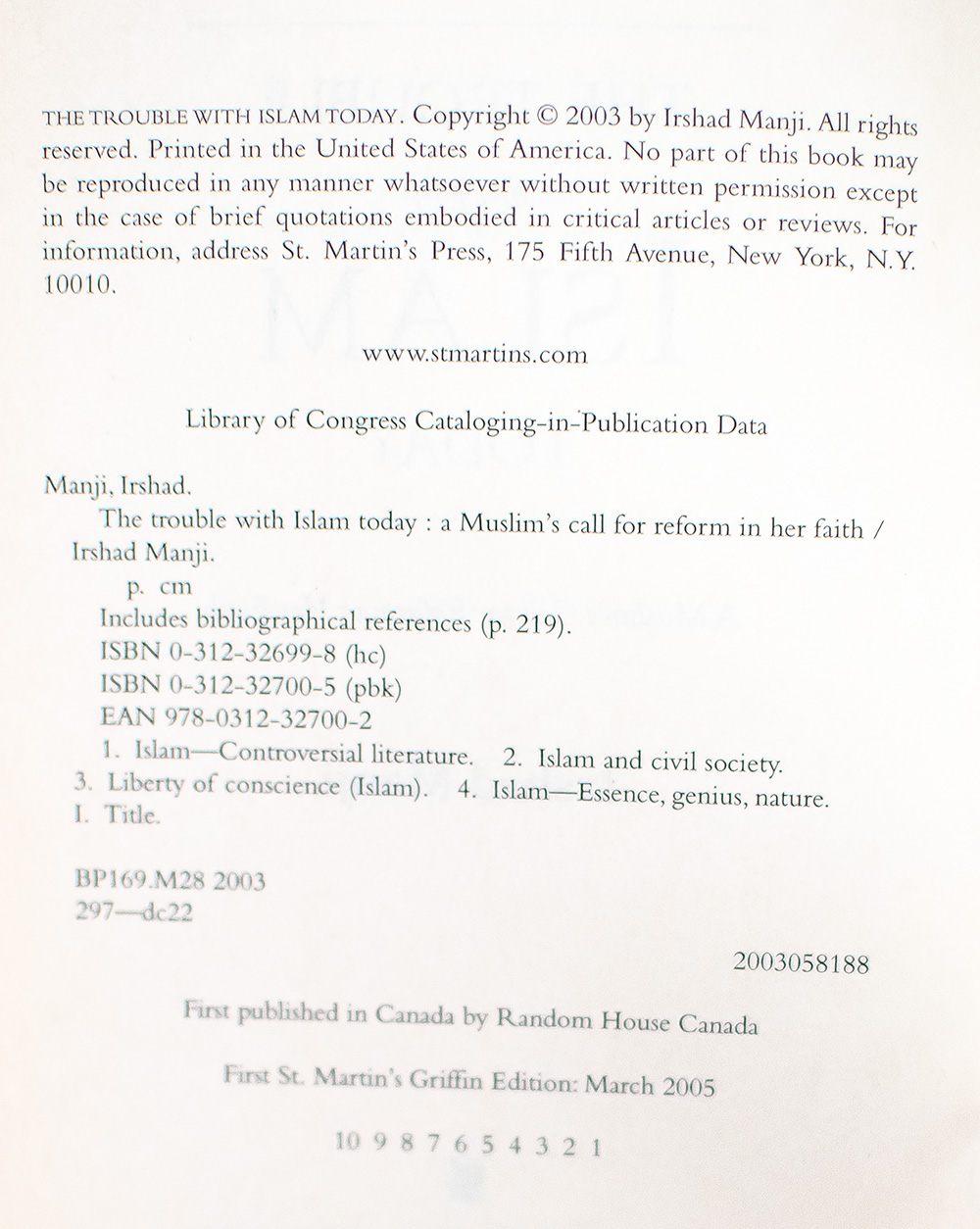 First edition of Manji's The Trouble With Islam Today: A Muslim's Call for Reform in Her Faith; From the Library of Secretary of State Madeleine Albright