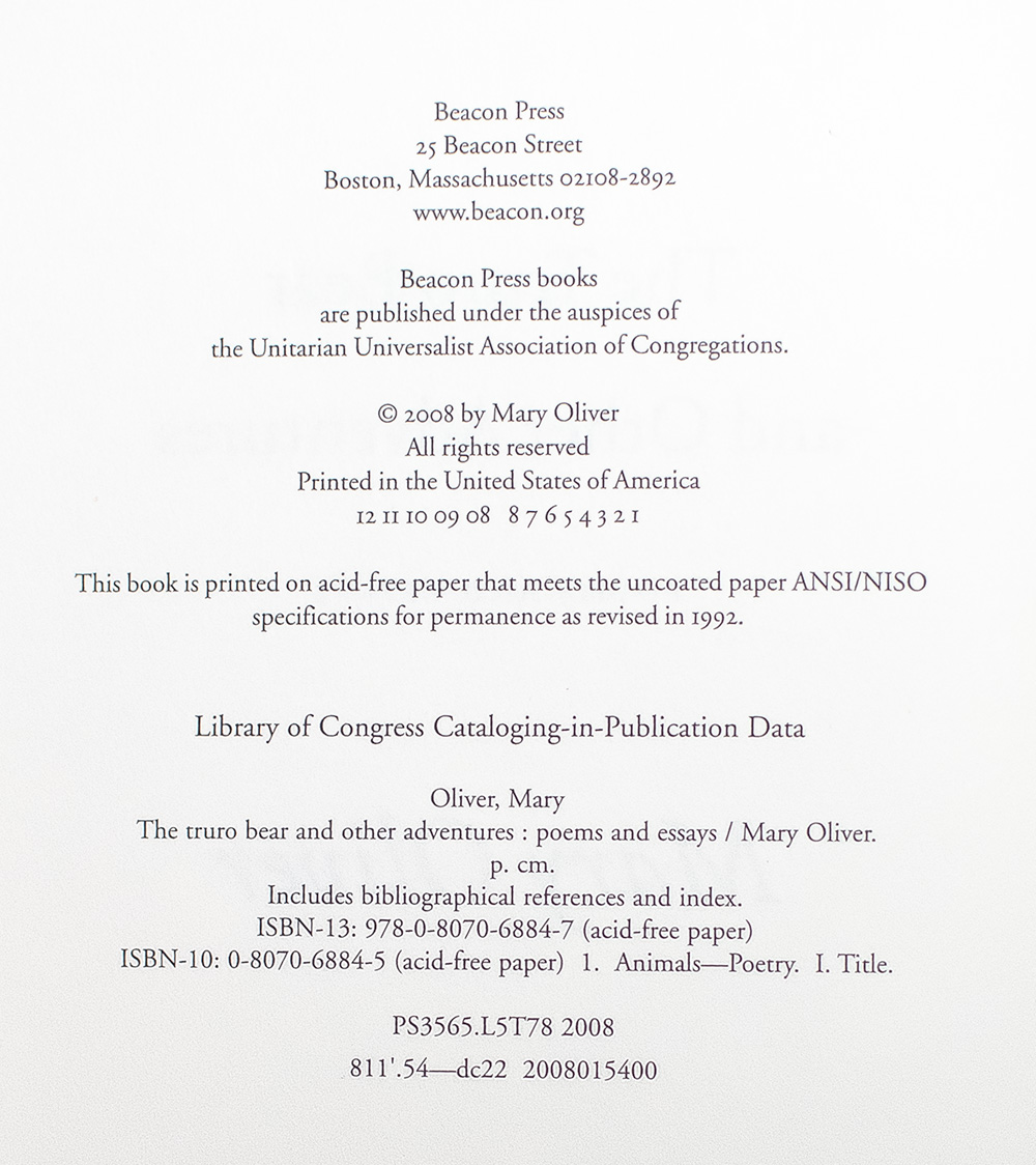 The Truro Bear and Other Adventures: Poems and Essays.