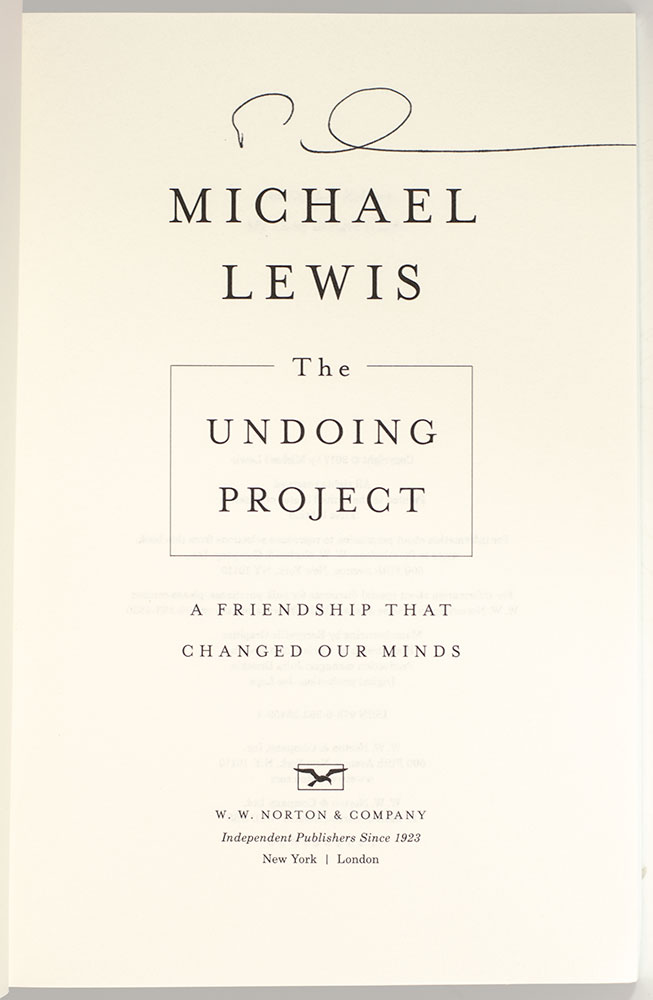 First Edition of The Undoing Project; Signed by Michael Lewis and Nobel Prize-Winning Economist Daniel Kahneman