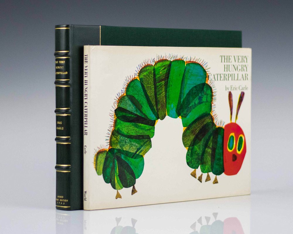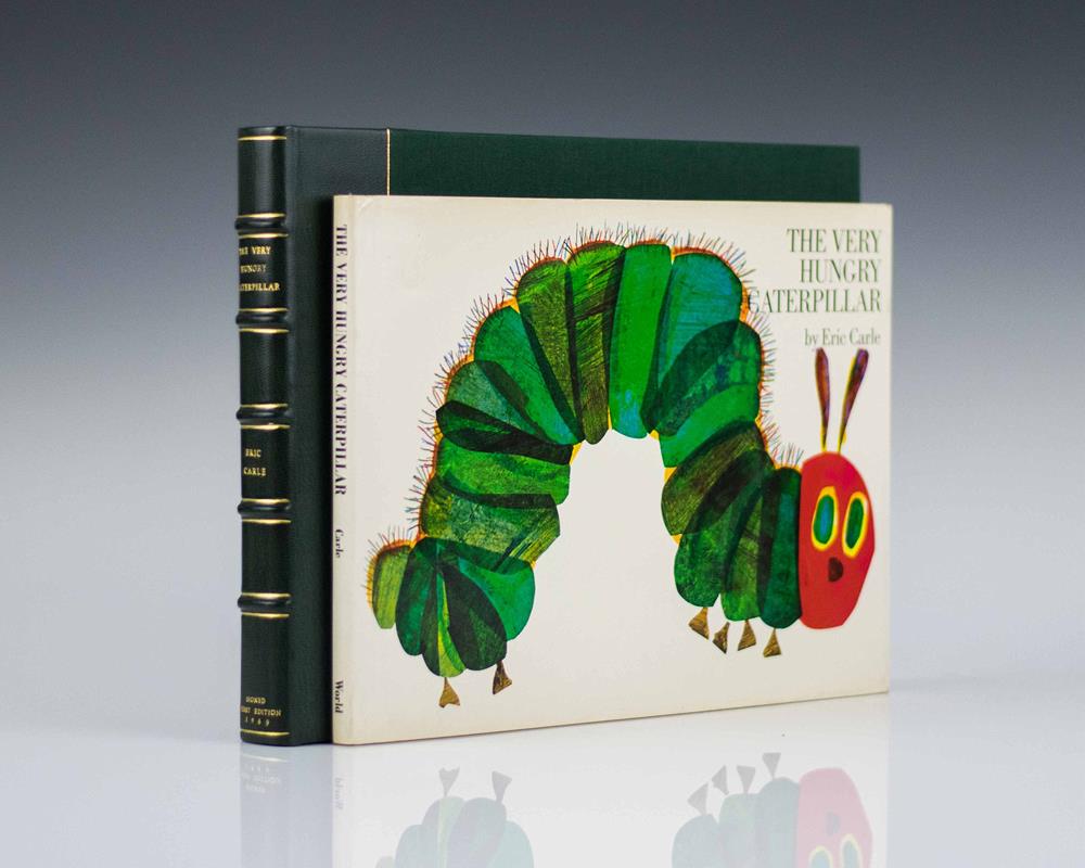 First edition with the number line 1-10 on the copyright page. Oblong quarto, original illustrated boards. Signed by Eric Carle, who has drawn a caterpillar on the title page. Also laid in is a note from the author attesting to the book’s value. Light wear to the bottom boards, near fine in a near fine dust jacket. Housed in a custom half morocco clamshell box. First editions are extremely rare.