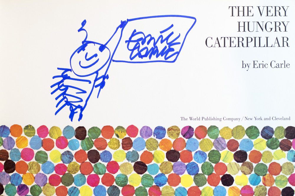 Exceedingly Scarce First Edition of Eric Carles Classic Work The Very Hungry Caterpillar; Signed By The Author With A Drawing of a Caterpillar