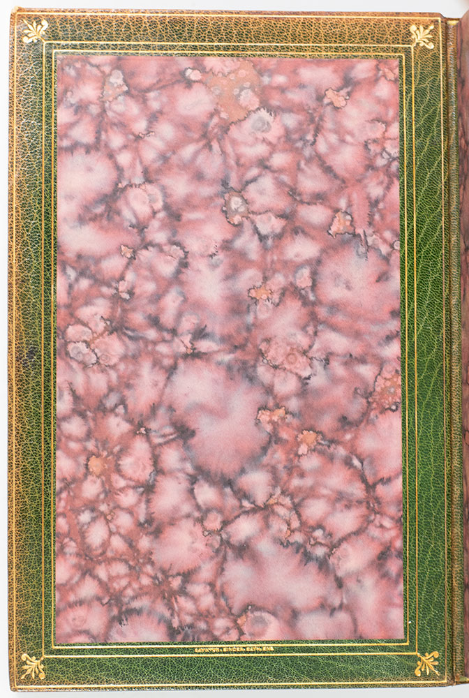Finely bound example of one of the most popular and widely read novels among Victorians. Octavo, bound in full crushed levant morocco by Bayntun Bindery, gilt titles and tooling to the spine in six compartments within raised gilt bands, elaborate gilt ruling to the front an rear panels, central morocco onlay to the front panel, gilt turn-ins and inner dentelles, marbled endpapers, all edges gilt, ribbon bound in, illustrated with one hundred and fourteen colored illustrations. With a prefatory memoir by George Saintsbury. From the library of Eugene Field with his bookplate to the pastedown. Often referred to as "the poet of childhood" American author Eugene Field began publishing poetry in 1879, when his poem "Christmas Treasures" appeared in A Little Book of Western Verse. Over a dozen volumes of poetry followed and he became well known for his light-hearted poems for children, among the most famous of which are "Wynken, Blynken, and Nod" and "The Duel." Equally famous is his poem about the death of a child, "Little Boy Blue." In very good condition.