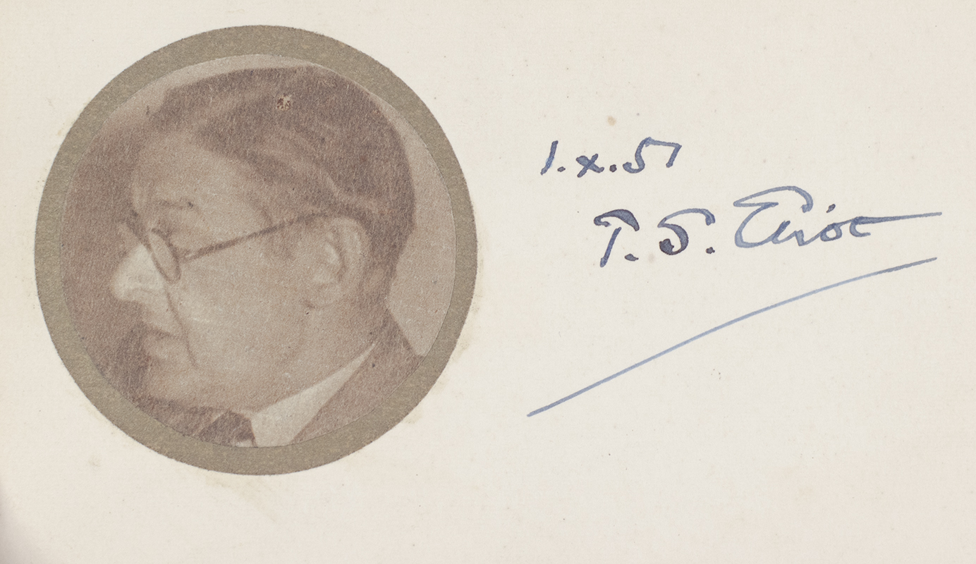 First edition of one of the most influential works of the 20th century, number 562 of 500 copies, the Eliot family copy. Theodora Eliot Smith was T.S. Eliot's niece, ownership inscription for front free endpaper, with an autograph card signed, "T.S. Eliot 1.X.1951," printed portrait of Eliot on left hand side. Octavo, original black flexible cloth, lettered in gilt. In near fine condition. Housed in a custom clamshell box. A unique example, most rare and desirable.