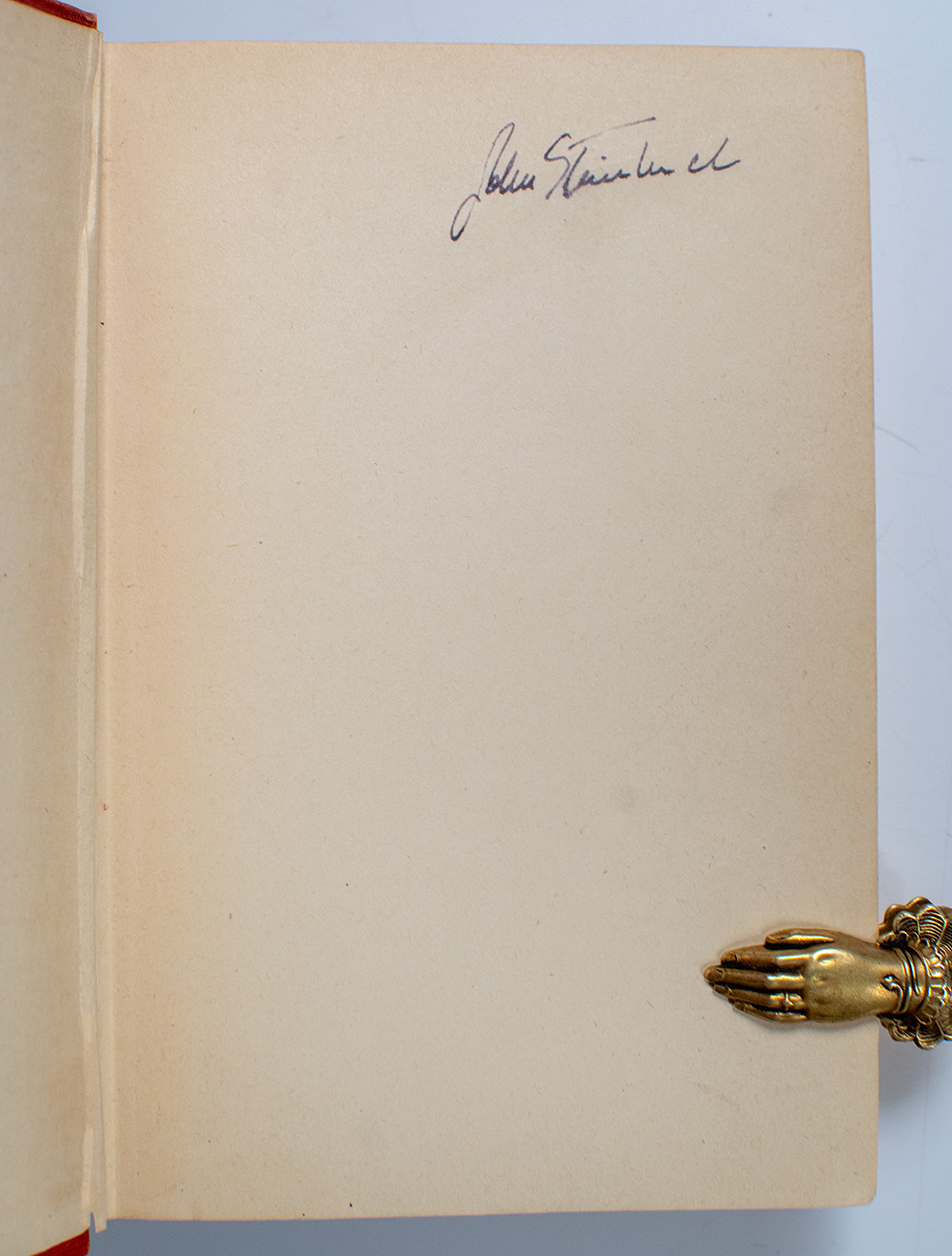 First edition of this work by the Nobel Prize-winning writer. Octavo, original cloth. Boldly signed by John Steinbeck on the front free endpaper. From the library of John and Carol Steinbeck with their stamp to the front pastedown. Carol Henning Steinbeck, John Steinbeck’s first wife, was instrumental in his early literary development, sustaining the couple financially and offering editorial input during the years when Steinbeck struggled to establish himself as a writer. Their marriage, which lasted from 1930 to 1943, coincided with the creation of some of his most important early works, including Tortilla Flat (1935) and The Grapes of Wrath (1939), yet ultimately dissolved under the pressures of fame and Steinbeck’s personal restlessness. Near fine in a near fine dust jacket. Jacket design by Robert Hallock. An exceptional example, most rare and desirable signed and from the writer's library.