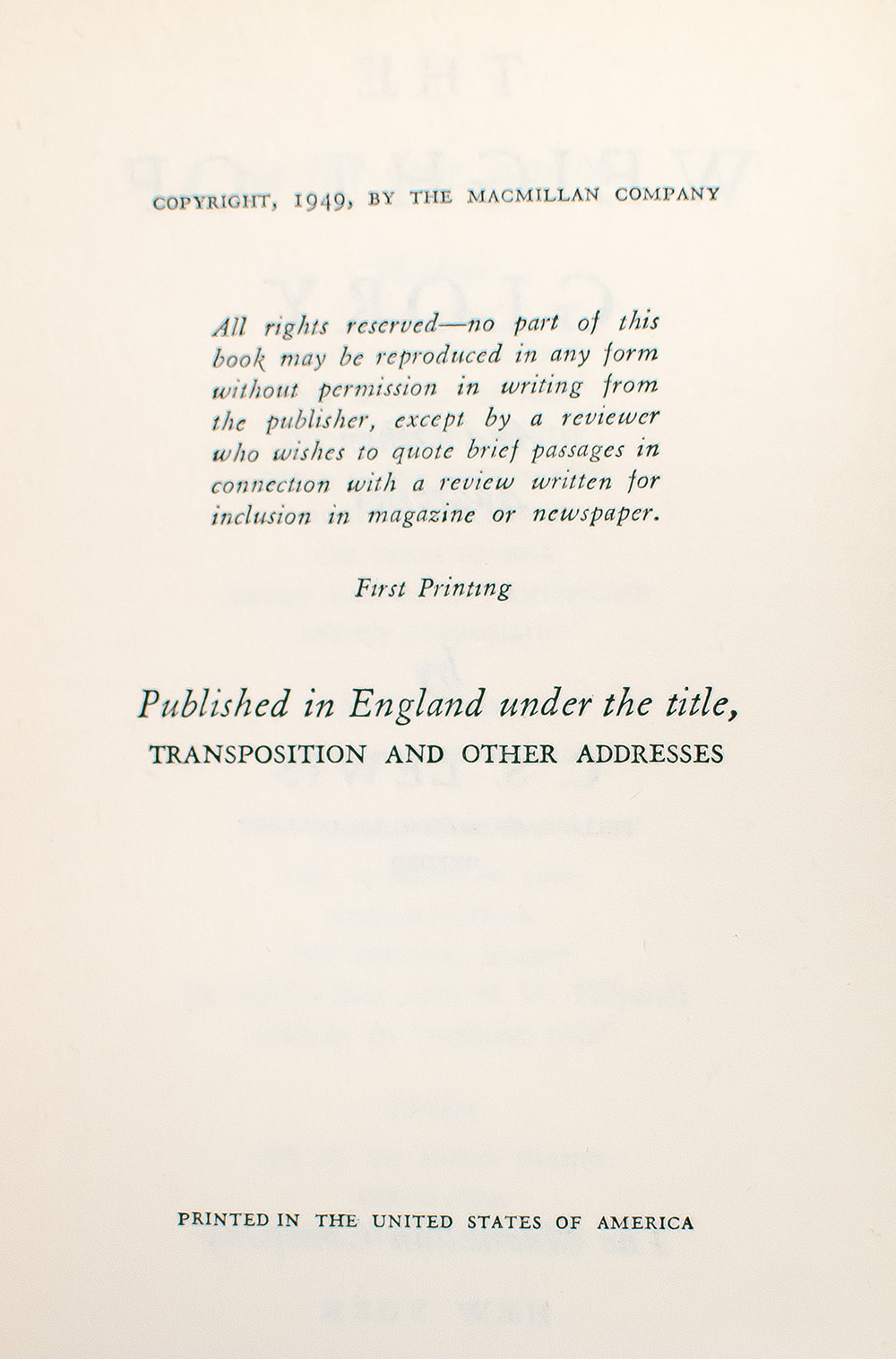 “We live, in fact, in a world starved for solitude, silence, and private: and therefore starved for meditation and true friendship": First Edition of C.S. Lewis' The Weight of Glory
