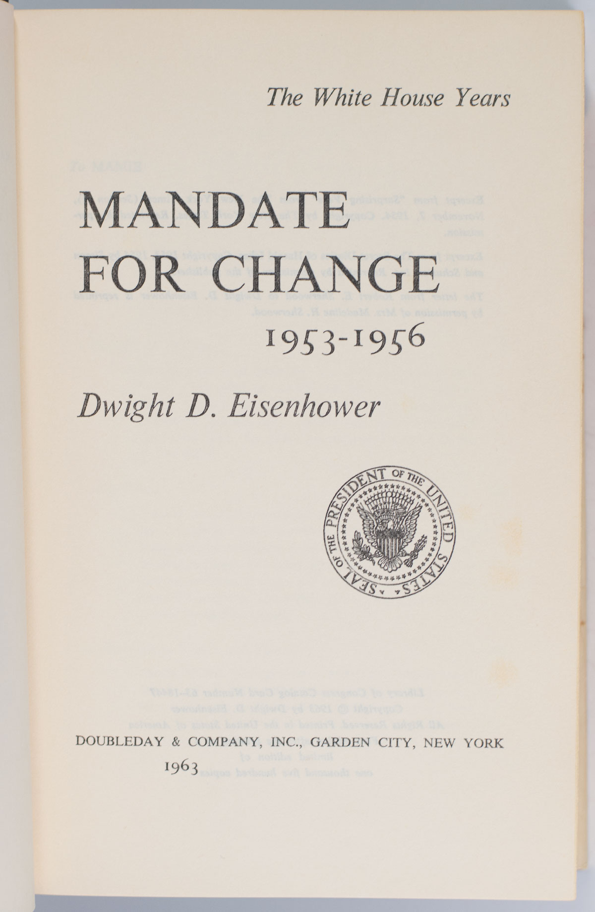 The White House Years: Mandate for Change 1953-1956.