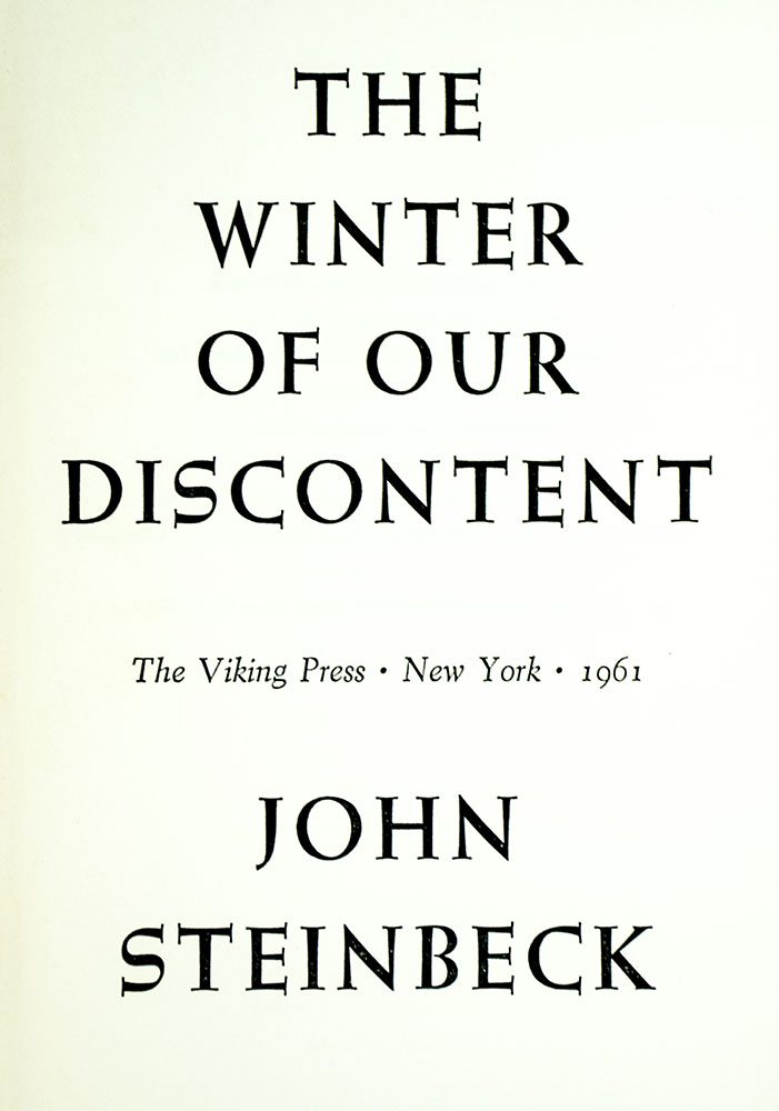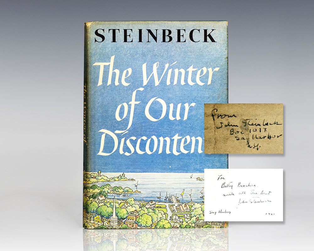 “It's so much darker when a light goes out than it would have been if it had never shone": First Edition of John Steinbeck's The Winter of Discontent; Inscribed by Him