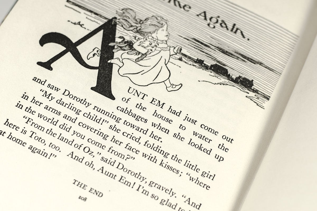 First Metro-Goldwyn-Mayer All Technicolor edition of Baum's most famous Oz book, the basis for one of the greatest films in cinema history. First printing with the gilt titles to the spine and printer's imprint to the copyright page (Bienvenue & Schmidt, pg 13). Octavo, original cloth with gilt titles and black labels to the spine, pictorial endpapers featuring photographs from the film. Illustrated with 8 tipped in color plates and numerous doutone plates and in-text illustrations by W. W. Denslow. Near fine in the rare original dust jacket which is in very good condition.