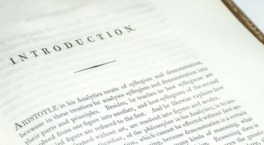 Aristotle's philosophical works covered an incredibly broad range of subjects including physics, biology, zoology, metaphysics, logic, ethics, rhetoric, politics and government; constituting the first comprehensive system of Western Philosophy. Through these many branches, Aristotle sought the universal; his aim was to discover the essential nature of being, becoming, existence and reality which he believed could be achieved through detailed systems of logic and classification. Aristotle’s works on natural history, particularly observations of the sea-life visible from the island of Lesbos, are some of the earliest known to have survived and include one of the earliest classification systems. Aristotle’s Metaphysics is considered to be his principal work as well as the first major work in metaphysical philosophy itself. “It forms the highest step in Aristotle’s system, and deals with the first principles of all existence. Here he grapples with the deepest questions of philosophy” (Peck, 130). Translated by Thomas Taylor, a leading English classicist of the day. “In his knowledge of Plato and Aristotle he has never been equaled by any Englishman, and he is still the most important disseminator of ancient philosophy in the history of English and American literature” (Axon, 11).