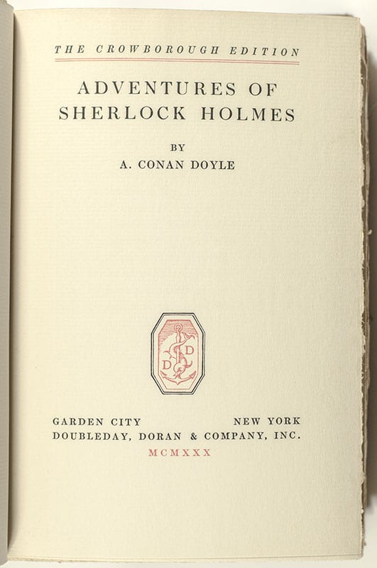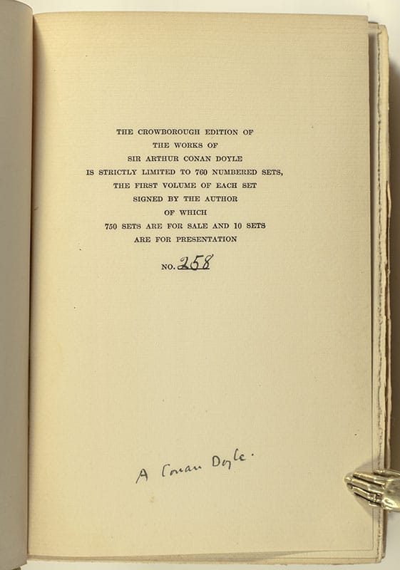 Limited Author's edition of the complete works of Arthur Conan Doyle, signed by him. Octavos, 24 volumes, bound in original cloth, frontispiece to volume one. One of 760 sets signed by Arthur Conan Doyle. In near fine condition. An exceptional set.