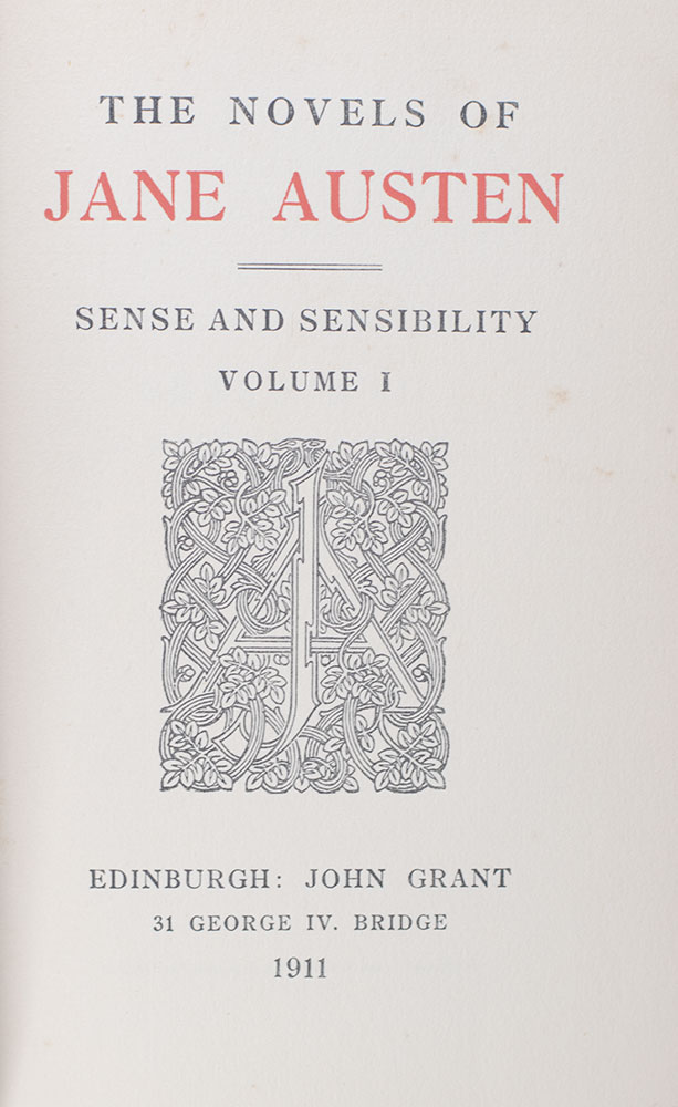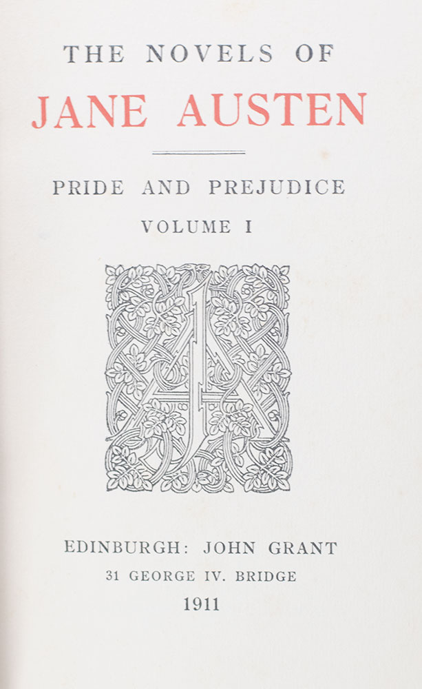 The Winchester edition of the works of Jane Austen containing each of her major novels. Octavo, 12 volumes, bound in three quarters calf, gilt titles and tooling to the spine, gilt ruling to the front and rear panels, top edge gilt. Contains Pride and Prejudice, Sense and Sensibility, Northanger Abbey, Mansfield Park, Emma, Persuasion, Lady Susan, and The Watstons. In fine condition. An exceptional set.