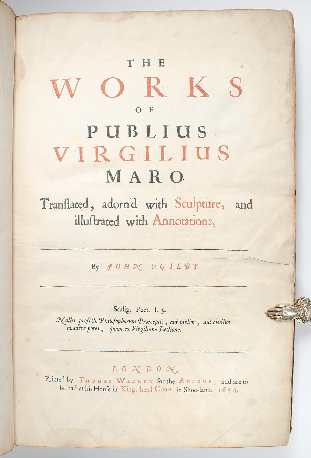 "A landmark work in 17th-century English printing": First illustrated edition of John Ogilby's English translation of the works of Virgil; with 101 full-page illustrations by Pierre Lombart and Wenceslaus Hollar