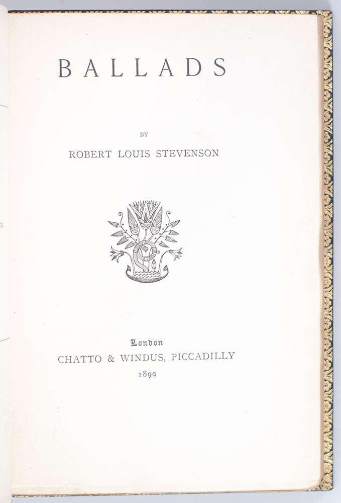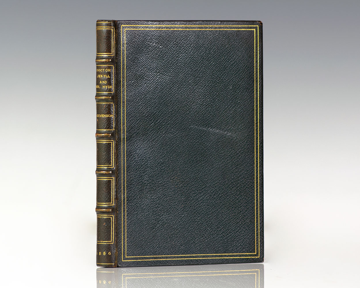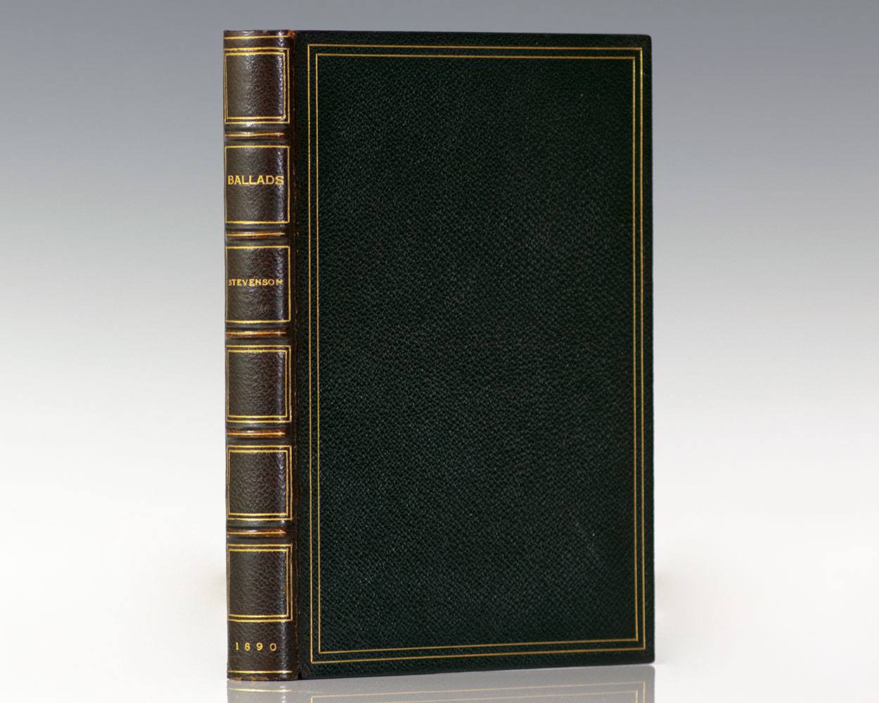 An extensive collection of forty-nine works by Robert Louis Stevenson, publishing date 1878-1926 to include the Letters of Robert Louis Stevenson, Sidney Colvin, Methuen 1899 and The Life of Robert Louis Stevenson by Graham Balfour 1901. 2 vols. Stevenson's Baby Book, John Howell, San Francisco 1922. Cummy's Diary, A Diary kept by Robert Louis Stevenson's nurse, Alison Cunningham 1863. Chatto & Windus 1926. Ltd 734/780; Edinburgh Picturesque Notes by Robert Louis Stevenson with etchings by A Brunet-Debaines. Seeley Jackson and Halliday 1879. Octavo, 49 volumes, bound in dark green morocco, title titles to the spine, raised bands, gilt top edge, original covers are tipped at the back of each book. In near fine condition. A nice set.