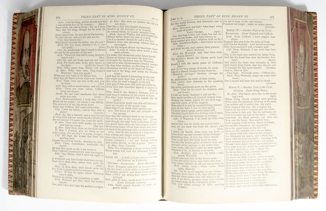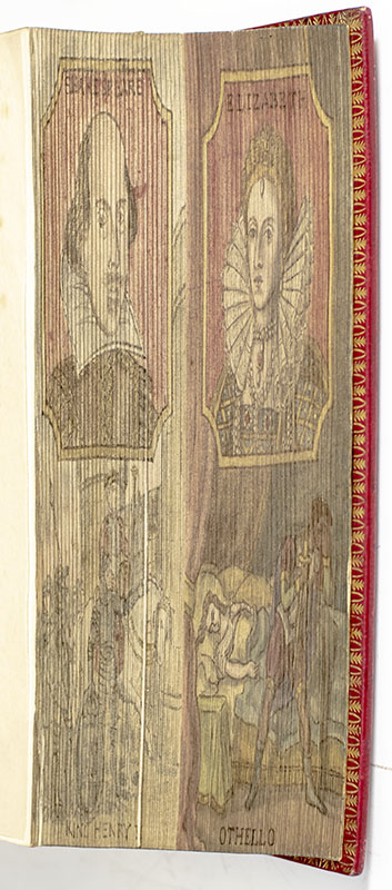 Finely bound example of Shakespeare's collected works; finely bound in full morocco with a fore-edge painting of Shakespeare and Her Majesty Queen Elizabeth