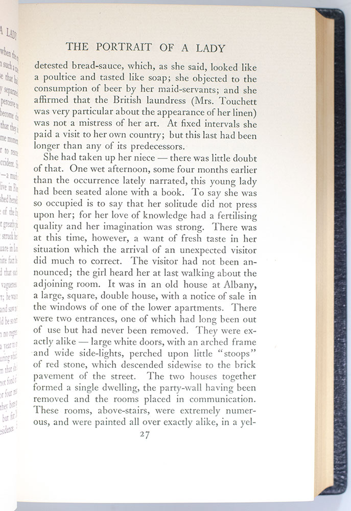 First edition of the New York edition of the works of Henry James. Octavo, 24 volumes, bound in full morocco by Zaehnsdorf, gilt titles and tooling to the spine, photogravure frontispiece in each volume by Alvin Langdon Coburn, tissue-guards. In fine condition. An exceptional collection of the definitive edition of Henry James.