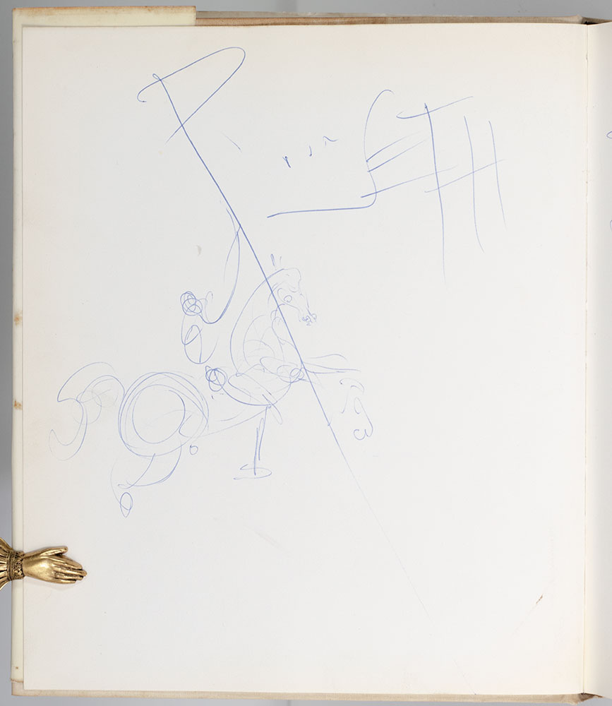 First edition of this wonderfully illustrated work of Dali. Quarto, original cloth, illustrated. Presentation copy, boldly signed and inscribed by Dali on two pages, "Pour Seth Dennis hommage de Salvador Dali 1963" with a large drawing. Fine in a very good dust jacket. A unique example.