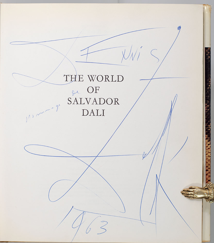 First Edition of The World of Salvador Dali; Inscribed by Him Twice with a Large Drawing of Don Quixote
