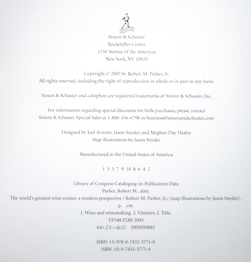 First edition of the renowned wine critic's elaborately illustrated work showcasing 175 of the world's most accomplished wine estates. Quarto, original cloth, pictorial endpapers, elaborately illustrated with color photographs. Boldly signed by Robert M. Parker on the second free endpaper. Fine in a fine dust jacket. Jacket design by Beth Middleworth. Uncommon signed.