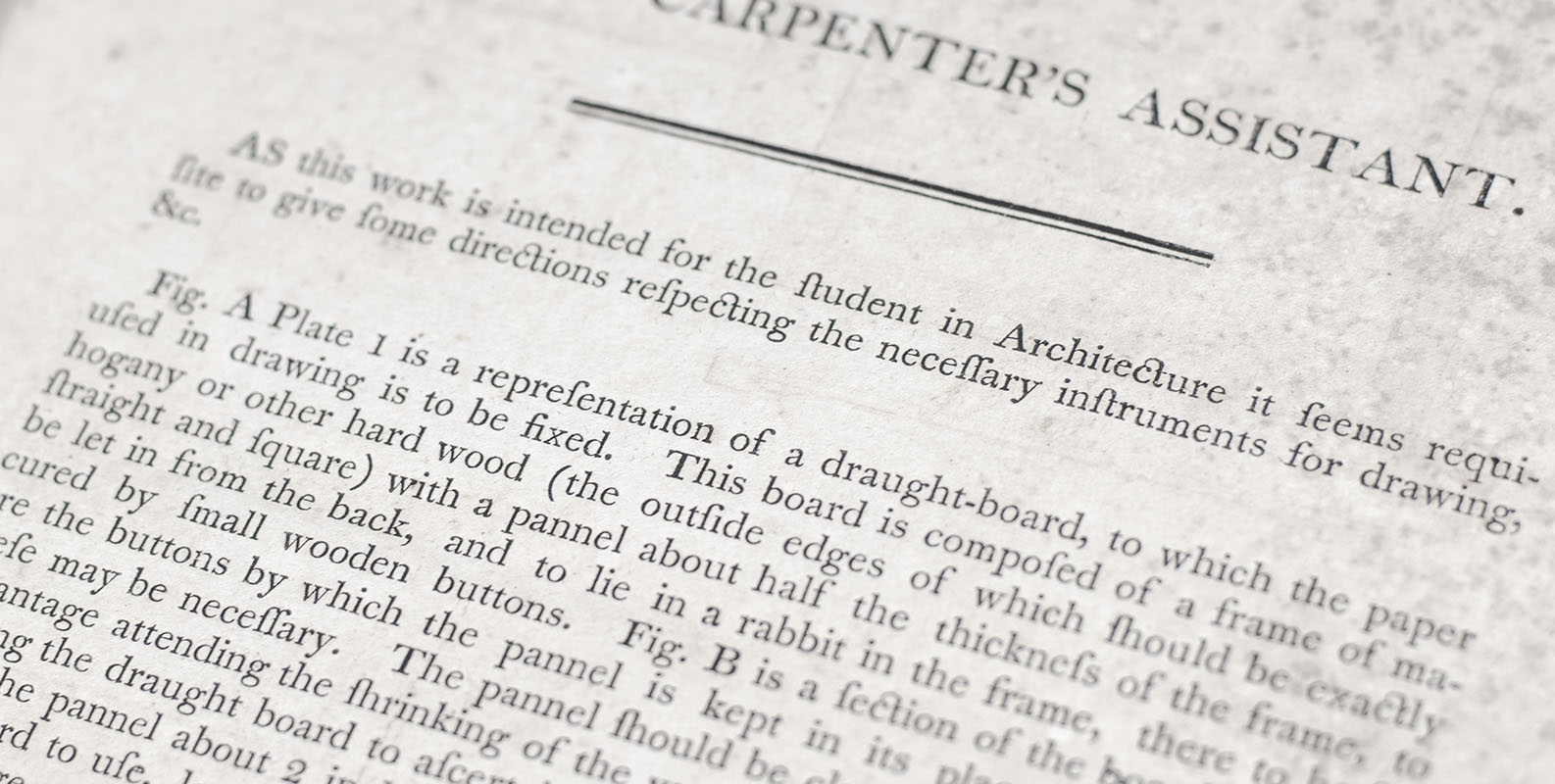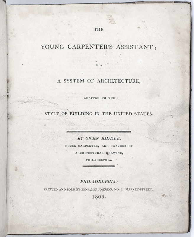 First edition of the second book on architecture published in America: Owen Biddle's The Young Carpenter's Assistant