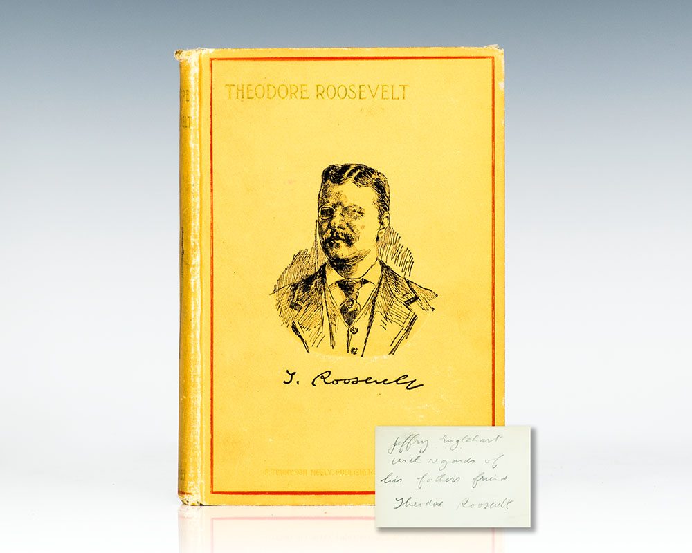 First edition of this early biography of Theodore Roosevelt. Octavo, original cloth, gilt titles to the spine, front panel, frontispiece of Roosevelt. Inscribed by Theodore Roosevelt on the front free endpaper in a contemporary hand, "Jeffrey Englehart, with regards of his father's friend, Theodore Roosevelt." In very good condition, with an ownership stamp of the recipient below. In very good condition. Rare, this is the first example we have seen signed and inscribed by Roosevelt.