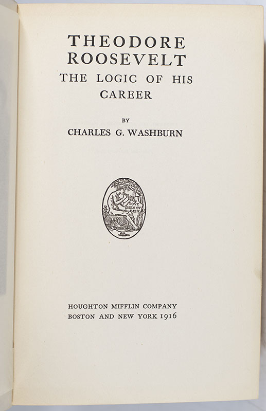 "Good luck to you; and very sincere thanks for all the information you have given me about Mexico": First edition of Charles G. Washburn's Theodore Roosevelt: The Logic of His Career; Lengthily Inscribed by both Roosevelt and Washburn