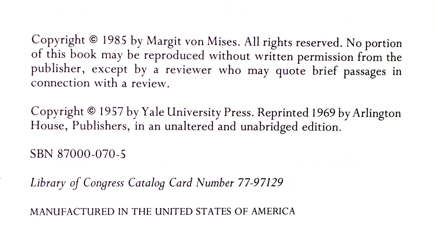 VON MISES, Ludwig; Preface by Murray N. Rothbard.