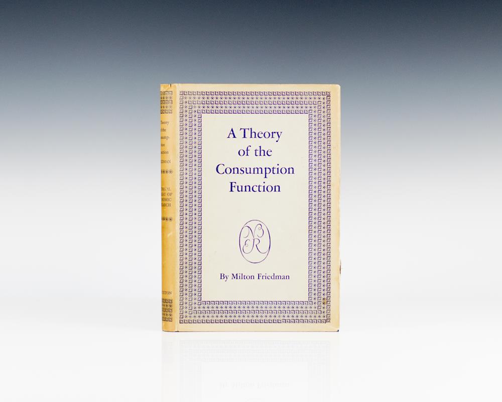 Milton Friedman's masterpiece of economic theory "reinterpreted that Keynesian concept of the consumption function by relating it to lifetime instead of current income. For its ingenious manipulation of data and its reconciliation of apparently conflicting evidence, this book must rank as one of the masterpiece of modern econometrics" (Blaug, 63). "Milton Friedman offered conservative answers to the great questions of economics, at the same time challenging economic thought since Keynes. In this book, Friedman disputes Keynes' idea that aggregate spending and income are directly linked (and therefore open to government influence). Rather, he writes, consumer spend independent of government policy, based on their expected long-term, or 'permanent' income. In all his writing, Friedman embraces a laissez-faire approach that celebrates individual freedom. He sees the ideal role for government as 'umpire', not 'parent" (NYPL Books of the Century 144).