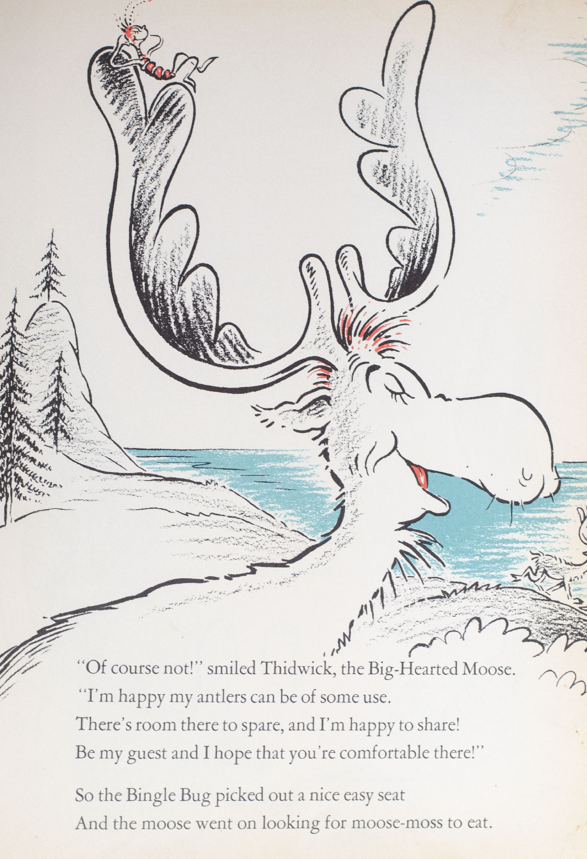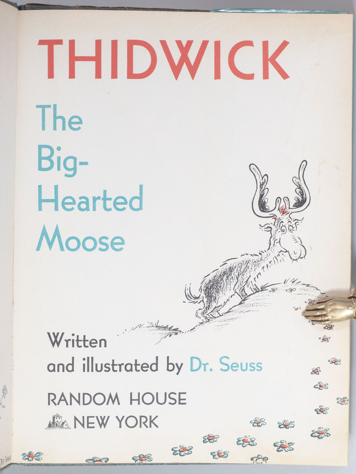 Dr. Seuss's Thidwick The Big Hearted Moose; lengthily inscribed by him with an original drawing
