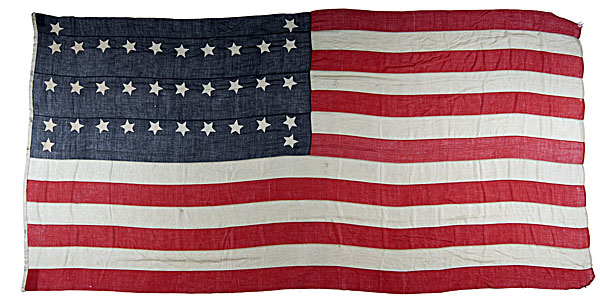 Rare thirty-four star Civil War era American flag commemorating the statehood of Kansas